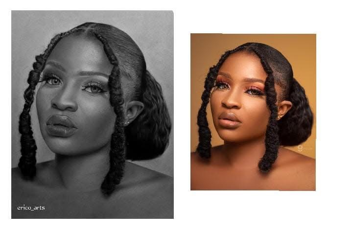 Obinna (ericoarts) begins the hand‑drawn portrait, focusing on hyper‑realistic detail and soulful expression. Updates can be shared during the process so you feel connected to the journey.