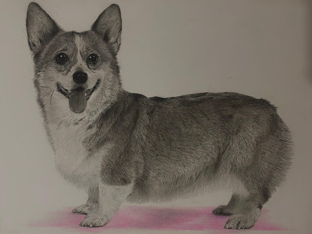 Hand drawn using charcoal and graphites pencils. this drawing I added a bit of colour pencils to make it unique as corgis are wonderful and unique breed of dog
